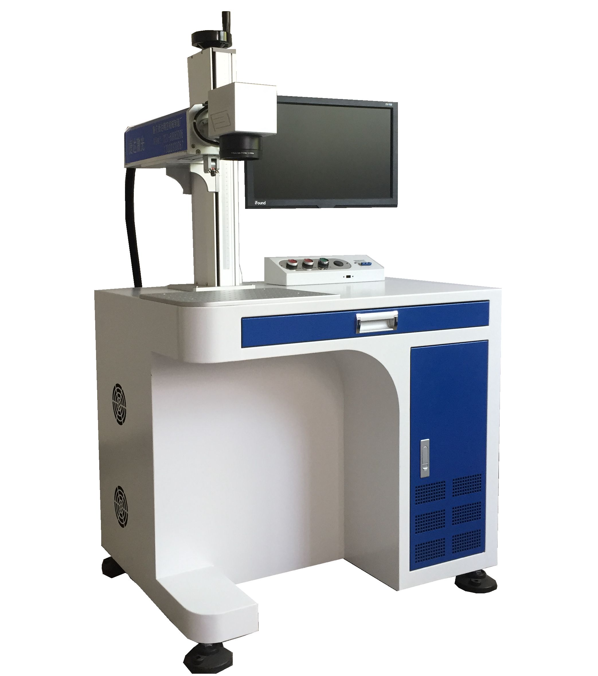 采用光纤输出激光,再经高速扫描振镜系统实现打标功能。激光器采用一体化整体结构,无光学污染与功率耦合损失,空气冷却,具有高效率、长寿命和少维护等性能。